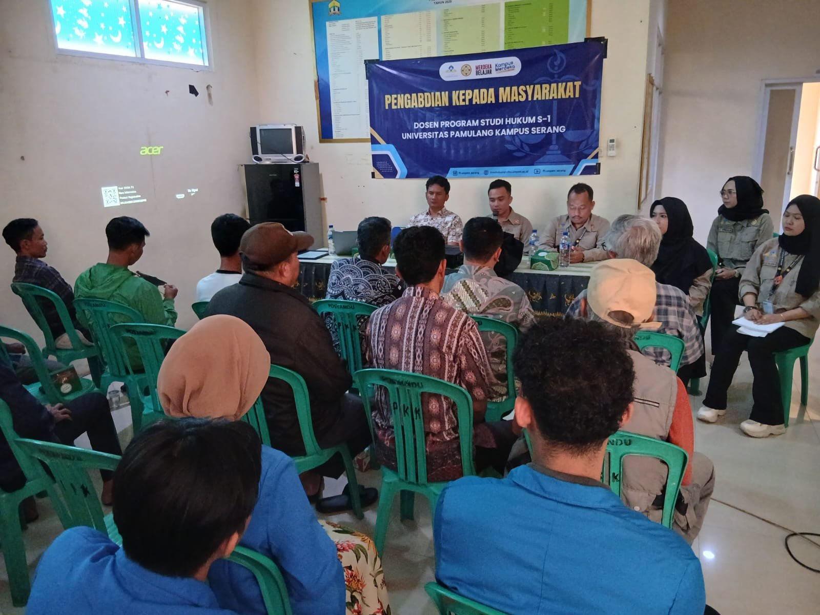 Serang, bantencom – Universitas Pamulang Kota Serang mengadakan Kegiatan Program Pengabdian Masyarakat Dosen Prodi Hukum S-1. Di Kelurahan Banjar Agung Kota Serang Banten pada hari Kamis 23 April 2025.