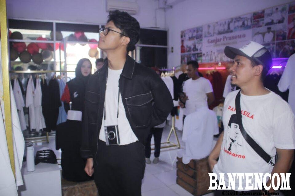 Alam Ganjar, putra sulung Calon Presiden (Capres) nomor urut 3 Ganjar Pranowo, meresmikan Warung Kreatif di Jalan Ki Ajurum, Kota Serang, Banten, Sabtu (13/1).