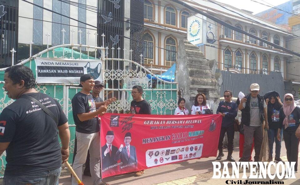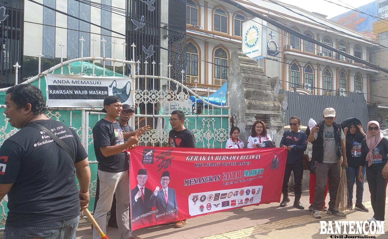 Relawan Ganjar – Mahfud Md (GAMA) se Kota Serang, Provinsi Banten, menggelar kegiatan bakti sosial bersih-bersih di lingkungan sekitar rumah tempat ibadah di Kota Serang, Provinsi Banten, hari ini Kamis (1/2/2024.