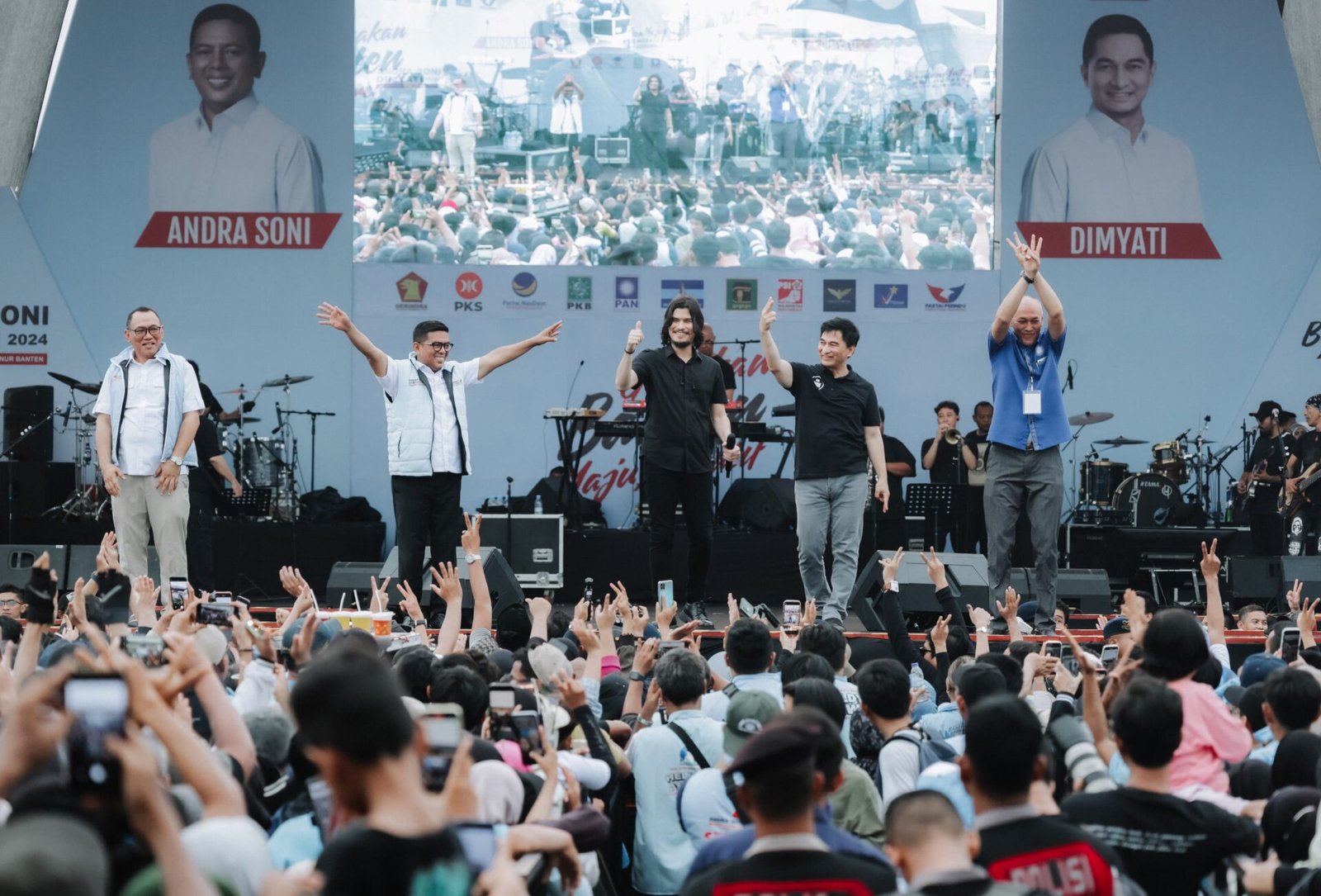 Acara ini dihadiri oleh puluhan ribu orang, termasuk para pelaku UMKM. Hiburan dalam acara ini dimeriahkan oleh berbagai artis, seperti Dewa-19, Charly Van Houten, Marshel Widianto, Tarra Budiman, Tasya Revina, dan Inara Rusli. Selain itu, turut hadir juga perwakilan partai politik pengusung, para relawan, dan pendukung Andra Soni-Dimyati. Ketua Umum GRIB Jaya, Hercules Rosario Marshal, juga hadir dalam kesempatan tersebut.